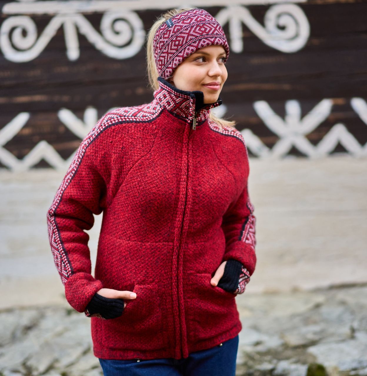 spojenie dvoch typov spracovania vlny pletenej a tzv. plstenia, čo vytvára originálny vzhľad a príjemný pocit na dotyk