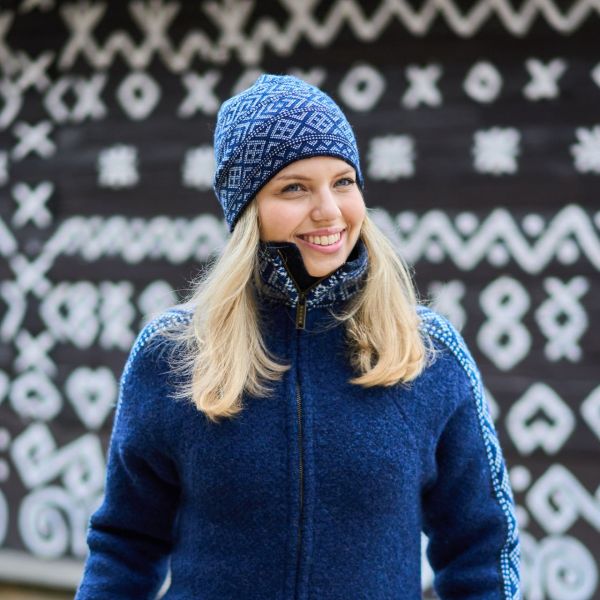 spojenie dvoch typov spracovania vlny pletenej a tzv. plstenia, čo vytvára originálny vzhľad a príjemný pocit na dotyk