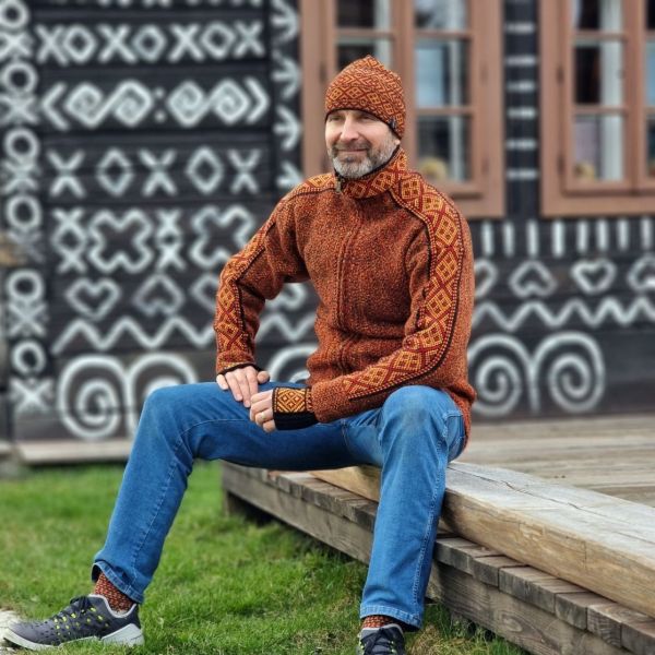 - spojenie dvoch typov spracovania vlny pletenej a tzv. plstenia, čo vytvára originálny vzhľad a príjemný pocit na dotyk